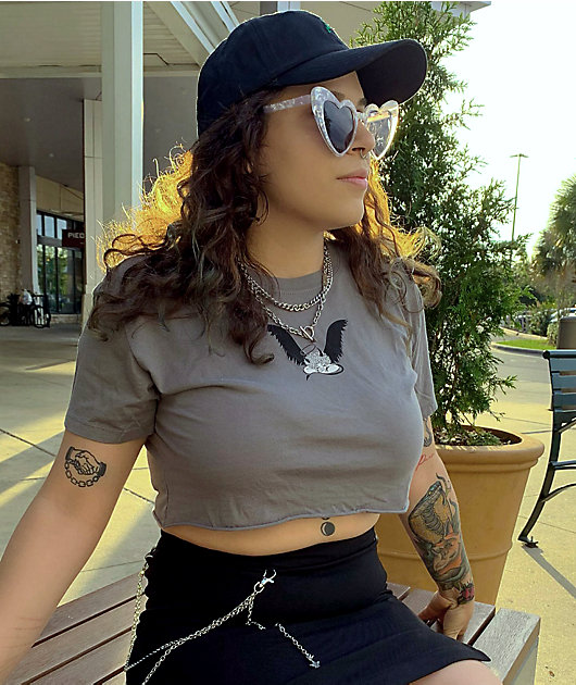 Empyre Kipsy Sleeping Angel Grey Crop T-Shirt