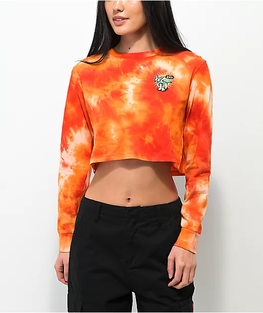 Empyre Kode Mushroom Red Tie Dye Long Sleeve Crop T-Shirt