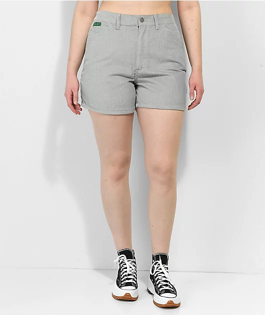 The Laurel Empyre skate shorts have a relaxed fit, cutting mid-thigh, and have a carp grey corduroy construction. These vintage inspired shorts have a comfortable elastic waistband, as well as a standard 5-pocket configuration, with two hand pockets, a co