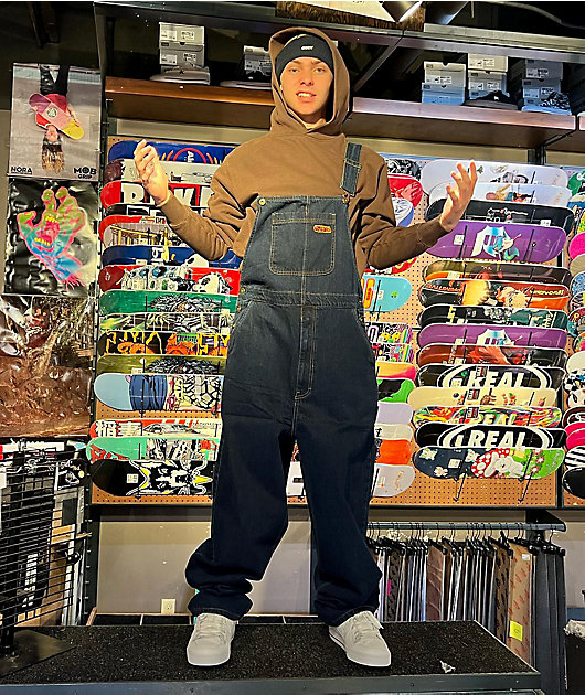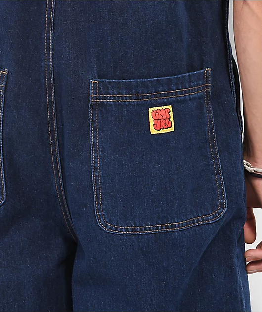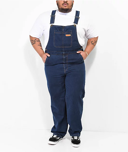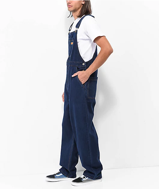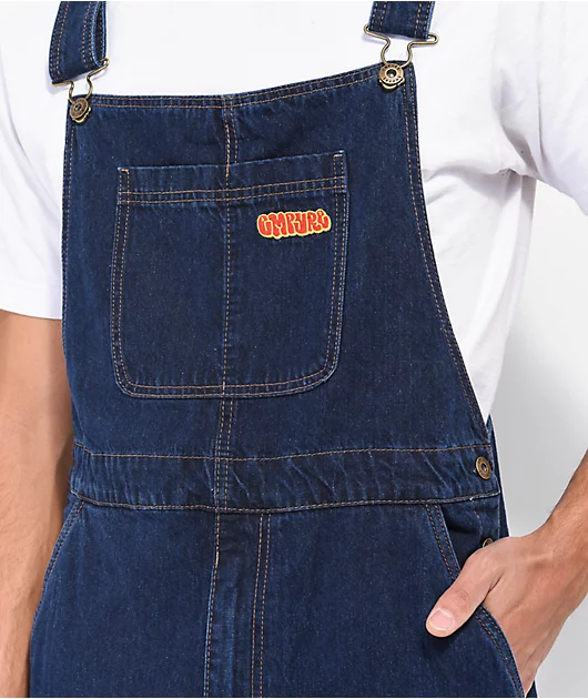 Add a relaxed vibe to your wardrobe with these loose fit evening skate denim overalls from Empyre, coming in a dark blue colorway. Embroidered on the chest pocket is the recognizable Empyre brand name in accents of red and yellow that draw the eye, also f