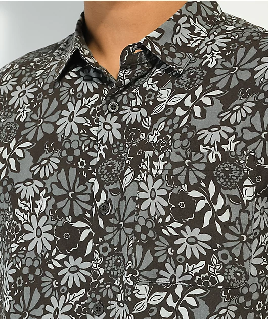 The silky, loose fitting Empyre Overgrown button up shirt features all over print of a monochromatic black and grey floral motif throughout. Perfect for warm weather, the breathable and smooth rayon fabrication is paired with a turndown collar, a chest po