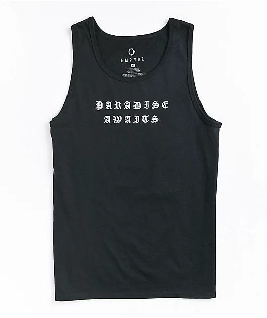 Splash some sinister style into your sunny-day attire with the Paradise Awaits black tank top from Empyre. The sleeveless silhouette and cotton construction keep things lightweight and comfortable, perfect for baring your shoulders when the sun peeks thro