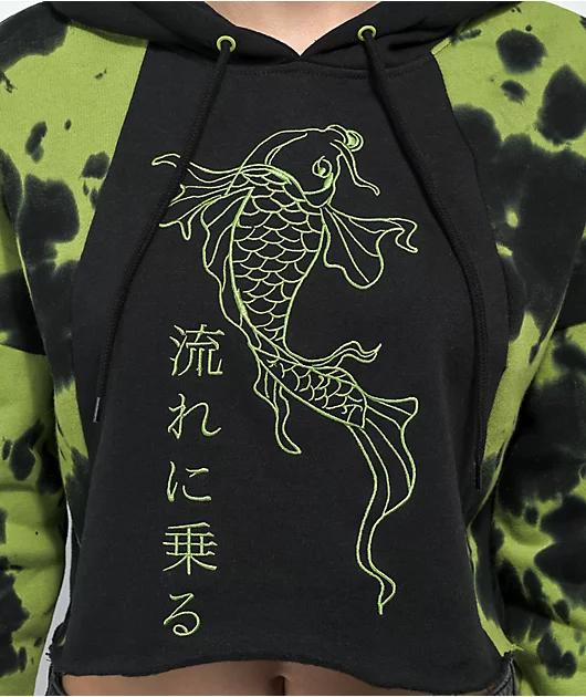 Empyre Riley Black & Green Tie Dye Crop Hoodie