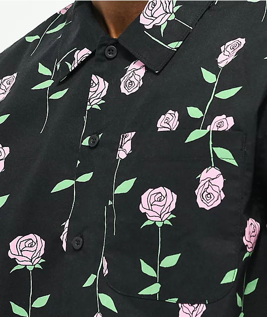 Empyre Rose Petals Black Short Sleeve Button Up Shirt