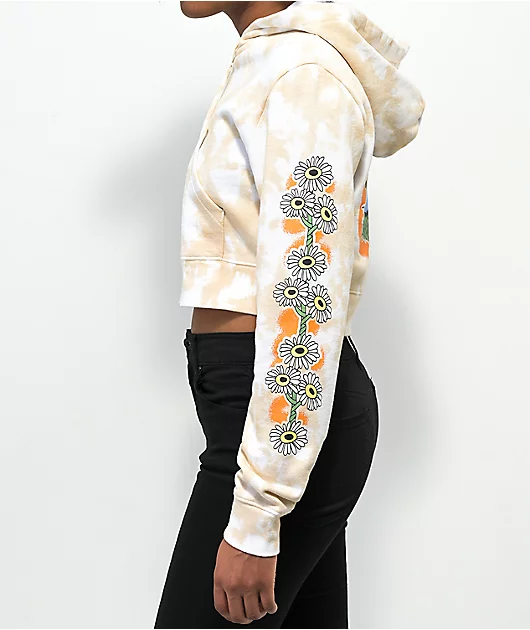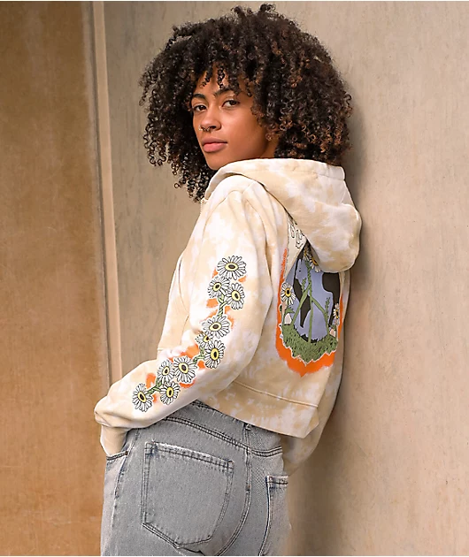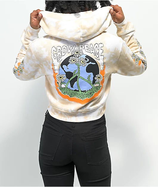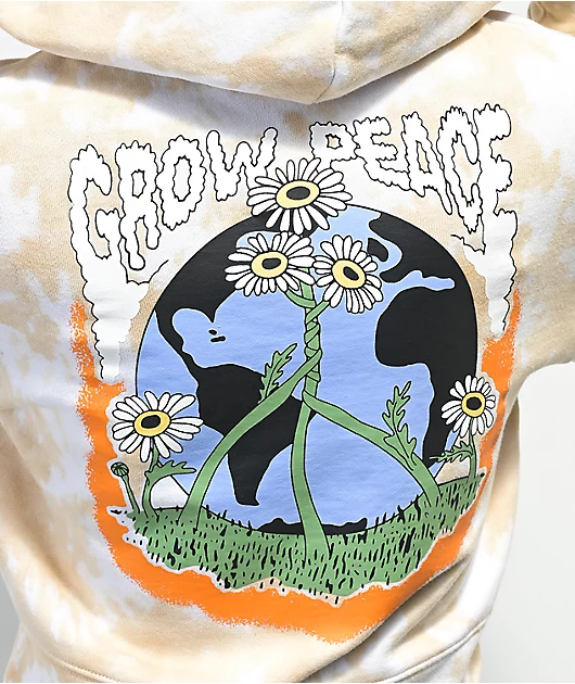 Empyre Rudy Grow Peace Tan Tie Dye Crop Zip Hoodie