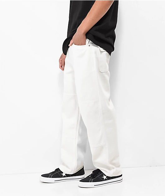 Empyre brings these carpenter skate pants in a cream colorway, giving pops of color in recognizable branding on the right front and back hip. These heavy-duty work pants feature a classic 5 pocket design, including seat pockets with snap closures for secu
