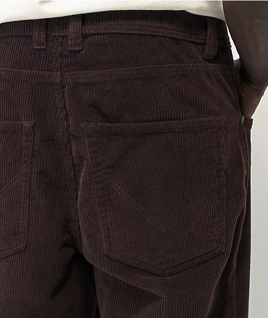 Stay comfy and cozy with the Skate java corduroy pants from Empyre. These vintage-style, deep brown cords feature a stretchy, straight leg construction for a loose, forgiving fit that won’t hinder movement. A bright Empyre tag appears at the watch pocket,