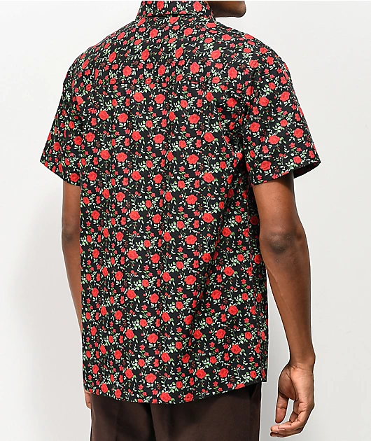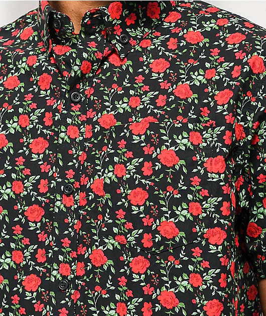 Empyre Tate Roses Black & Red Short Sleeve Button Up Shirt