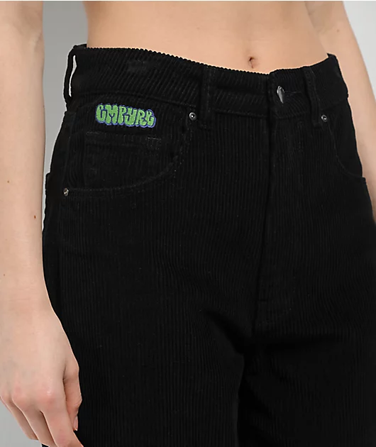 Bring some nostalgic vibes into the rotation of bottoms with the Tori 90s black corduroy skate pants from Empyre. These Empyre pants have black corduroy construction for some throwback texture, while the loose fit adds a splash of easy-going style to any