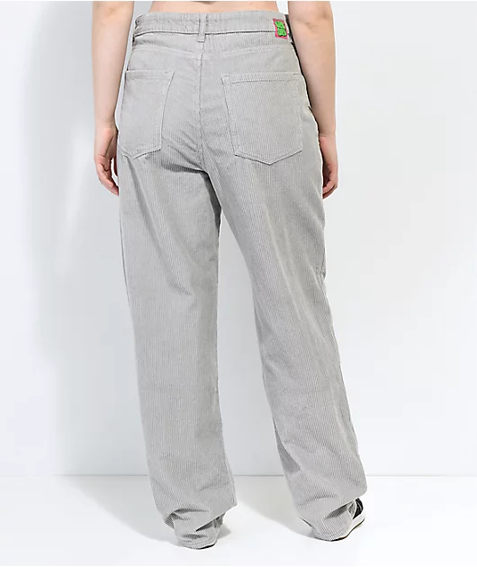 The Tori skate pants from Empyre come in a light grey colorway and a vintage, thick-ribbed corduroy construction. These cords have a loose-fit silhouette and standard 5-pocket configuration, with Empyre brand detailing above the right pocket and right sea