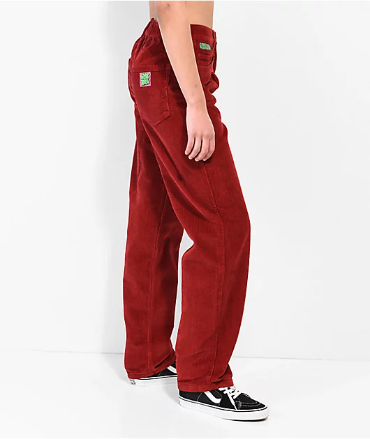 The Tori skate pants from Empyre come in a pleated corduroy construction with a wine colorway, adorned only on the front right pocket with green brand script. These comfy skate pants feature classic button-and-fly closure as well as a 5-pocket constructio