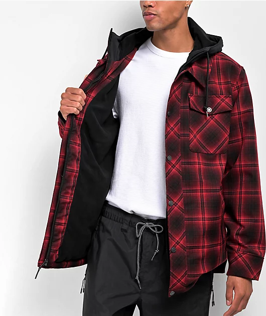 Grab the Empyre Traversed red & black plaid 10K snowboard jacket to get ready for snowboard season. 10K rated water-resistance fends off snow and even light rain, while the red and black plaid pattern adds some classic flannel vibes to finish things off.