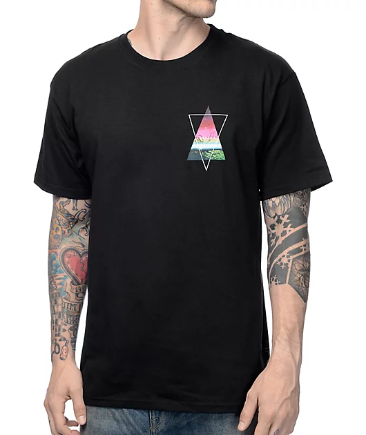 Explore new terrain with the Uncharted black t-shirt from Empyre. The black colorway features a screen printed double triangle graphic on the left chest, and large graphic on the back with the words \”Uncharted Territories\” beneath it. Grab this t-shirt an