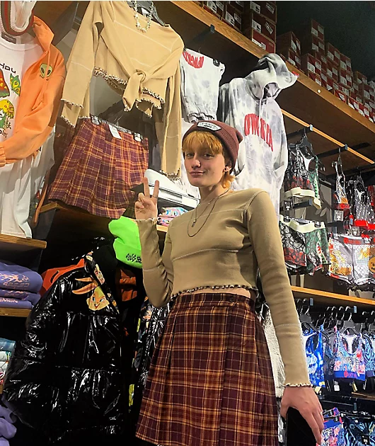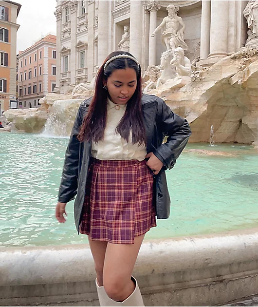 Show off your shins with Empyre’s Vanessa red and purple plaid mini skirt! With a button closure at the skirt’s waist and a pleated, A-line silhouette, this skirt will lend a touch of classic style to your ensembles, while the red-and-burgundy plaid patte