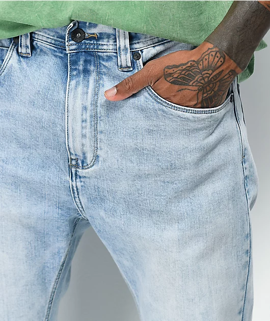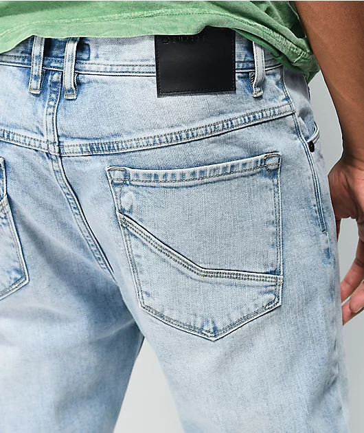 Serve up some classic style with the Verge light wash tapered skinny jeans from Empyre! These versatile skinny jeans come in a timeless light wash colorway, featuring a traditional five pocket design so you can keep your wallet & phone on you at all t
