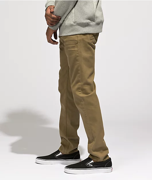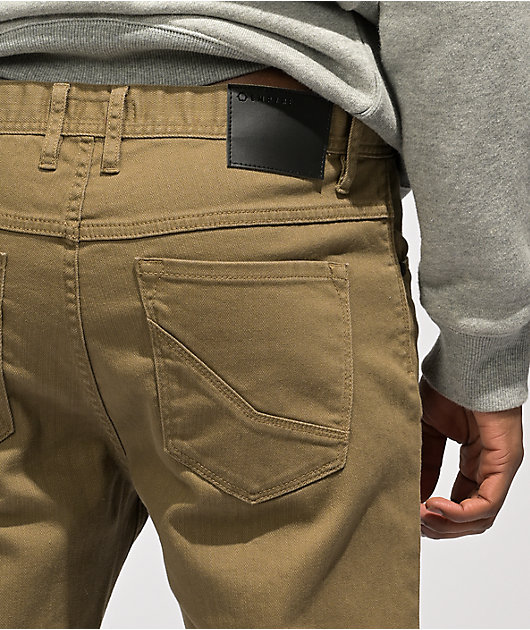 Who said khaki pants had to be lame? The Verge Tapered khaki skinny jeans from Empyre are going to be perfect for your favorite looks, with a striking khaki colorway perfectly complementing the tapered, skinny silhouette. A 5-pocket layout gives you plent
