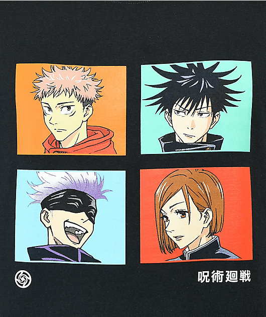 The Panels t-shirt from Episode x Jujutsu Kaisen is fabricated from soft, midweight cotton, and has a short sleeve silhouette. This anime shirt comes in a black colorway with a screen-printed graphic on the chest of Yuji, Nobara, Satoru, and Megumi.