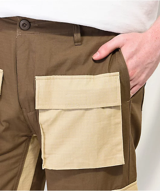 EPTM bring the Easy cargo flare pants in a brown colorway. These cargo pants feature adjustable leg openings with straps for a custom fit, and come complete with a four pocket configuration; boasting even more storage space with five additional hook and l
