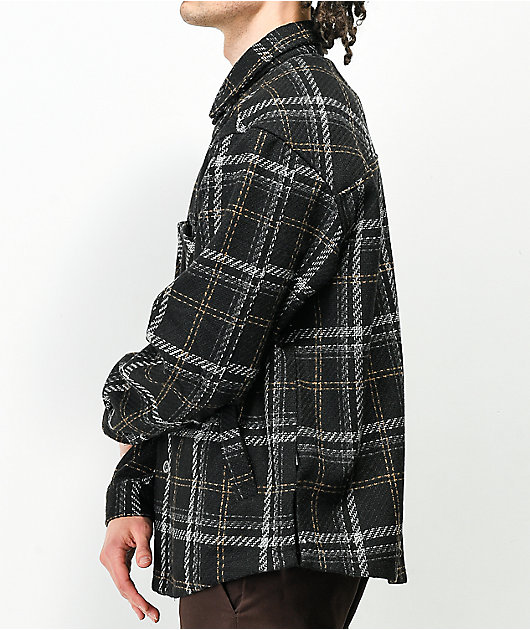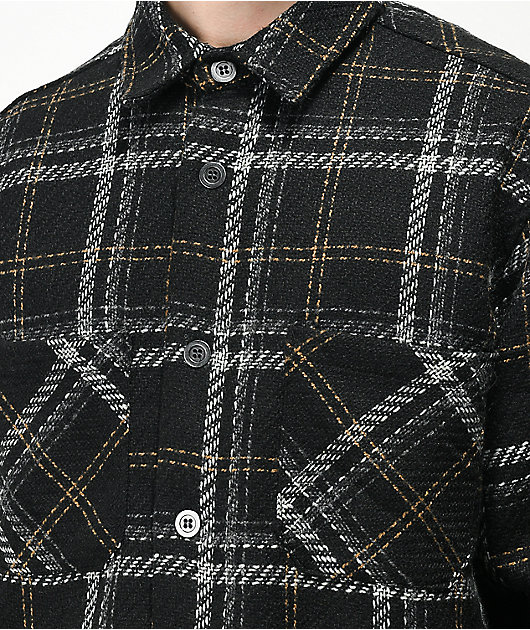 Lend a simple layer to your looks with EPTM’s Slit black and mocha flannel shirt. This shirt comes with a fold-down collar and button-up placket, lending a traditional touch to the silhouette, while the heavyweight tweed-style construction ensures maximum
