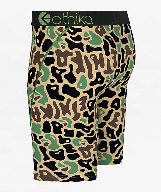 The Apex Woodland boxer briefs from Ethika come in a light tan colorway with woodland camo print throughout. The briefs are constructed from a breathable and stretchy blend of polyester and spandex, and the flatlock-stitched seams reduce itchiness for a s