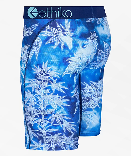 The Bluu Dreamz boxer briefs from Ethika show off sublimated images of marijuana leaves throughout, offering a snug fit with a thick elastic waistband and easy all day wear with flatlock-stitched seams for comfort.