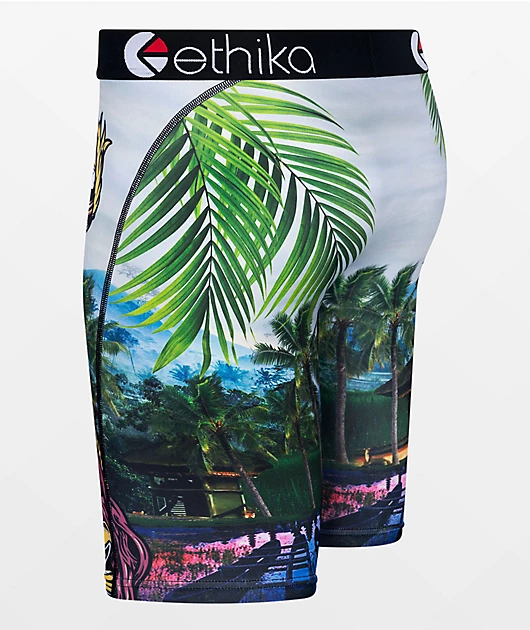 The BMR Primal boxer briefs from Ethika come with the sublimated image of an exotic location with a crane flying overhead. These underwear provide easy all day comfort with flatlock-stitched seams and a tagless waistline, while a thick elastic waistband o
