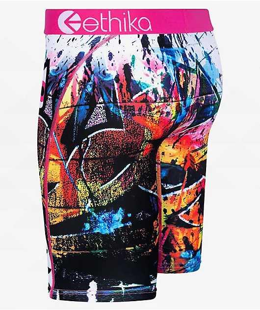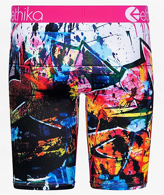 From Ethika comes the Bomber Pink Drip boxer briefs, with a vibrant graffiti design sublimated throughout. A shark motif appears along the left leg, as the boxer briefs are finished with Ethika branding on the waistband.