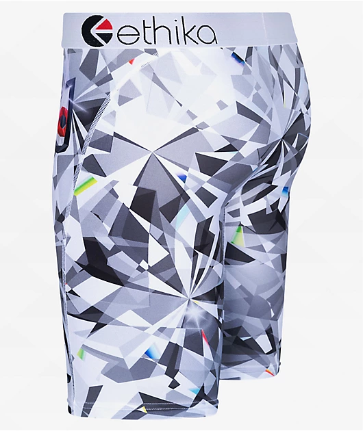 Ethika brings the Bomber boxer briefs in a white colorway, showing off a geometric pattern throughout in black and white. Using flat-lock stitched seams and no-rise technology, these athletic briefs provide comfortable all day wear; coming complete with a