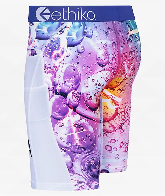 The Double Cup boxer briefs from Ethika boasts a sublimated graphic of a foam cup with a purple drink inside. The briefs have flatlock-stitched seams, a thick elastic waistband, and no-rise technology for maximum comfort.