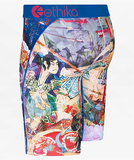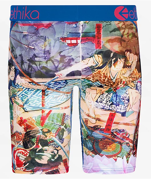 The Dynasty boxer briefs from Ethika feature a navy elastic waistband with sublimated graphics throughout of historical and contemporary Chinese imagery. For all day comfort, this underwear has a lightweight and breathable construction with no-rise techno