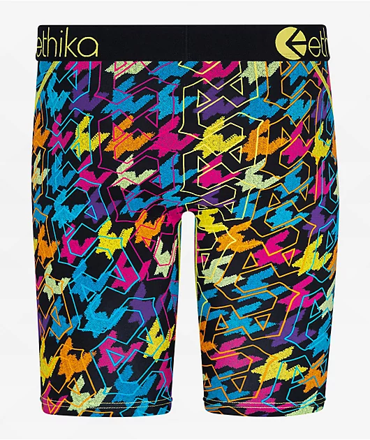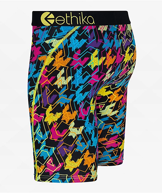 From Ethika Underwear comes the E-Hounded boxer briefs in a black colorway with multicolored, neon logos throughout. The briefs feature Ethika’s no-rise technology that keep the boxers in place all day, while the poly-spandex blend provides superior breat