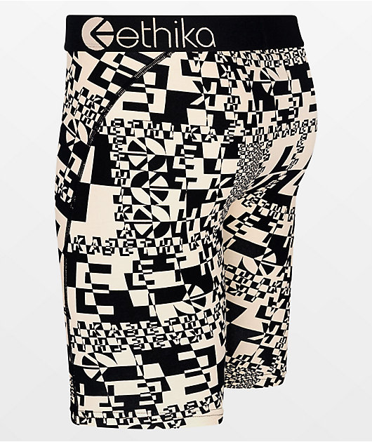 From Ethika Underwear comes the Glitch-E Cotton boxer briefs, featuring an optical illusion-inspired graphic throughout with logo script blended in. The poly-spandex blend provides optimal comfort and mobility regardless of your daily activities.