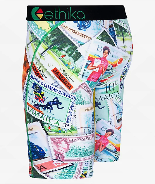 From Ethika Underwear comes the Island Pride boxer briefs, featuring sublimated graphics of Jamaican postage stamps throughout. The briefs feature a no-rise technology, so you can rest assured these boxers will stay in place all day long.