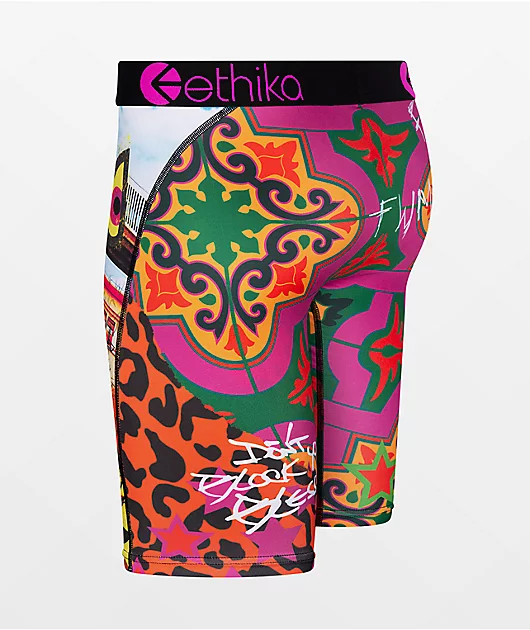 The Ethika kids’ Bomber Bronx boxer briefs have a wide, purple and black elastic waistband and are made from a super soft, super breathable blend of polyester and spandex. They’re made with no-rise technology so they stay comfortably in place, and feature