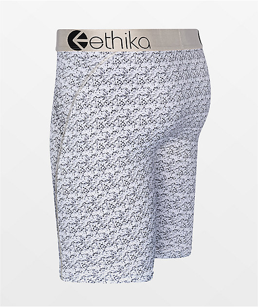 To ensure ultimate comfort, the Ethika kids’ Bust Down silver boxer briefs have been made with no-rise technology so that they don’t ride up, while the polyester construction keeps things breathable. Throughout these boxers are sublimated graphics of diam