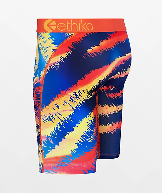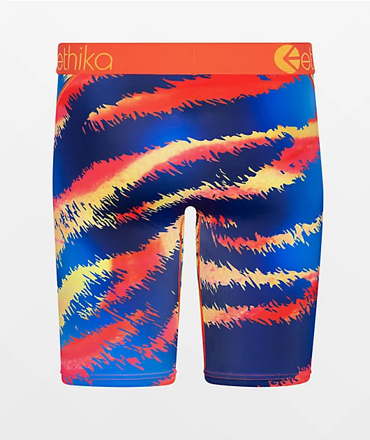 The kids Ill Tiger boxer briefs from Ethika features an orange elastic waistband with no-rise technology ensuring the perfect fit. This style is adorned with a sublimated tiger image throughout for a fierce, maximalist look.