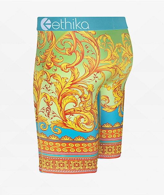 From Ethika comes the kids Never Baroque boxer briefs, featuring a teal waistband with sublimated gold adornments throughout for a royal look. This comfortable underwear features a lightweight and breathable construction with no-rise technology and flatlo
