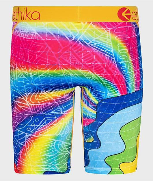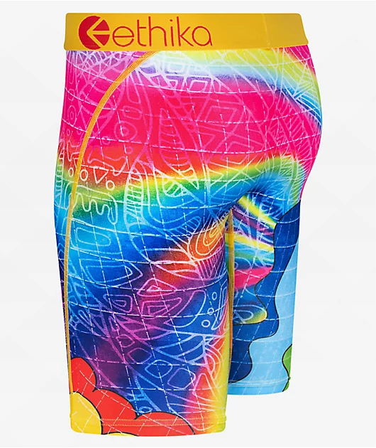 The Ethika Surreal Smiles boxer briefs come in a trippy rainbow colorway, with artwork of smiling faces and LSD blotter artwork throughout. Made from a breathable poly-spandex blend, the staple fit boxer briefs are finished with flat-lock stitching, a no-