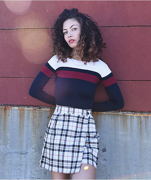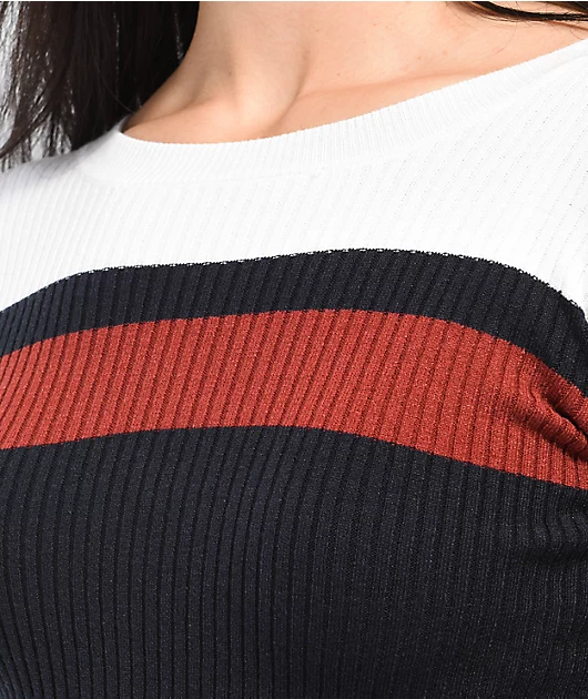 Maroon Colorblock Long Sleeve Crop Sweater from Ethos