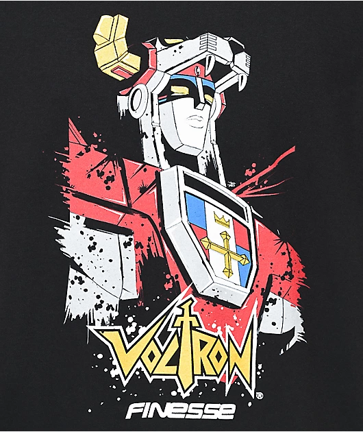 Lend a legendary element to your looks with the Royal black t-shirt from Finesse x Voltron! The short-sleeved silhouette and lightweight cotton construction keeps the shirt comfortable and casual, while a screen-printed graphic of a fully-assembled Lion V
