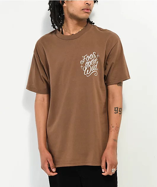 In a brown colorway comes the Flash t-shirt from Foos Gone Wild, showing off the brand name left of chest in a cursive script and images of tattoo-inspired artwork on the back that make up a flash sheet you might see in a tattoo parlor. This loose fitting