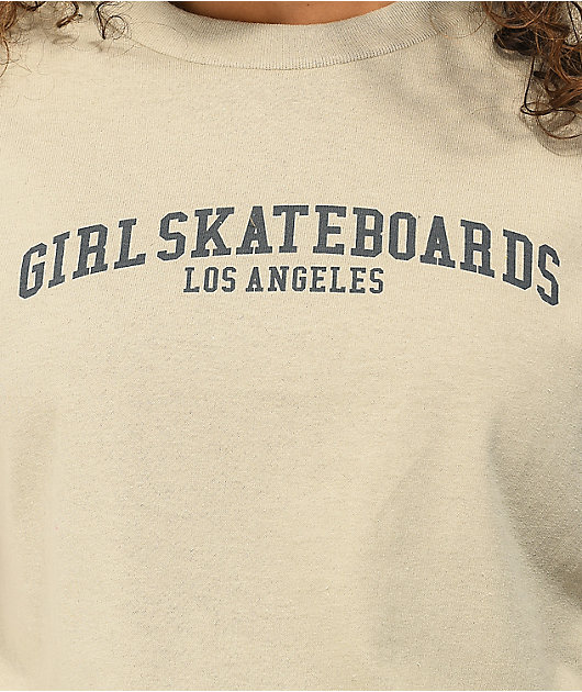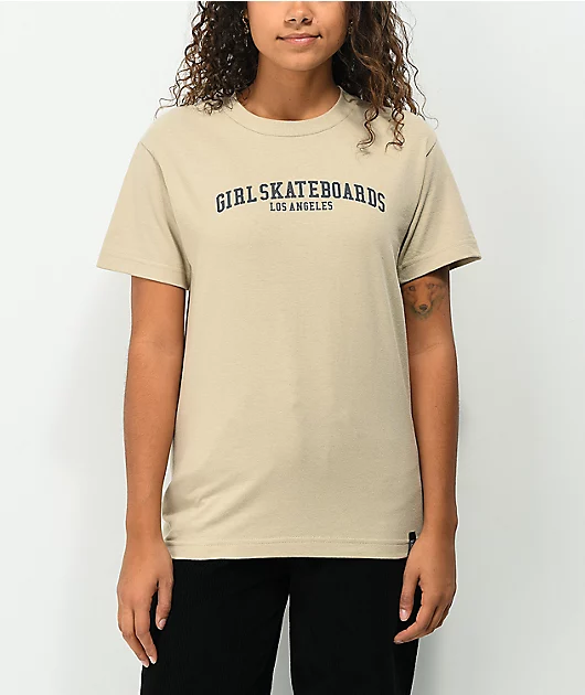 Represent a tried-and-true, time-tested skate company with Girl’s Team khaki t-shirt! The tee’s soft cotton construction and short-sleeved silhouette keep it lightweight and breathable, while the khaki colorway keeps the look low-key. Screen-printed scrip