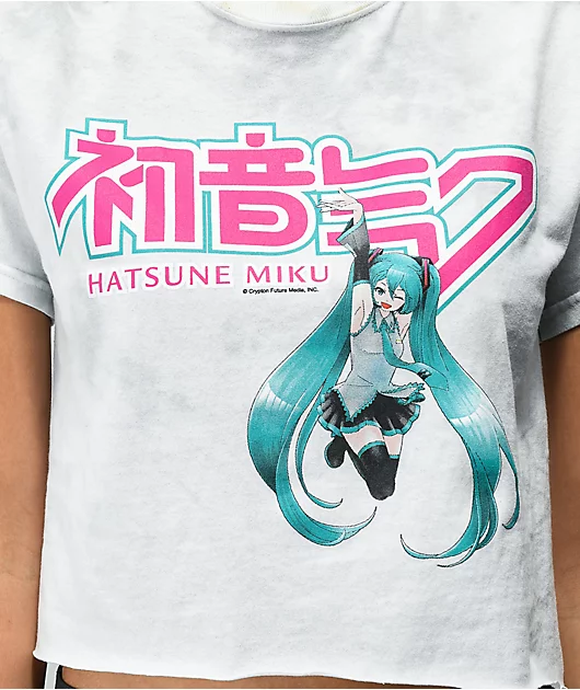 Hatsune Miku Grey Tie Dye Crop T-Shirt