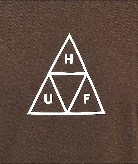 HUF presents their signature Triple Triangle design on an all-new brown colorway. This brown t-shirt features a white HUF triangle logo at the chest for a minimalist look. Made from a super soft cotton construction, this graphic tee is the perfect addit