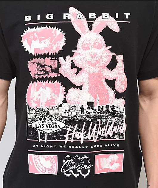 From the official HUF x Freddie Gibbs collaboration, the Night Alive t-shirt comes in a black colorway with pink imagery inspired by the album \”Soul Sold Separately.\” Pink casino imagery along with the rapper’s Big Boss Rabbit chain are screen-printed on
