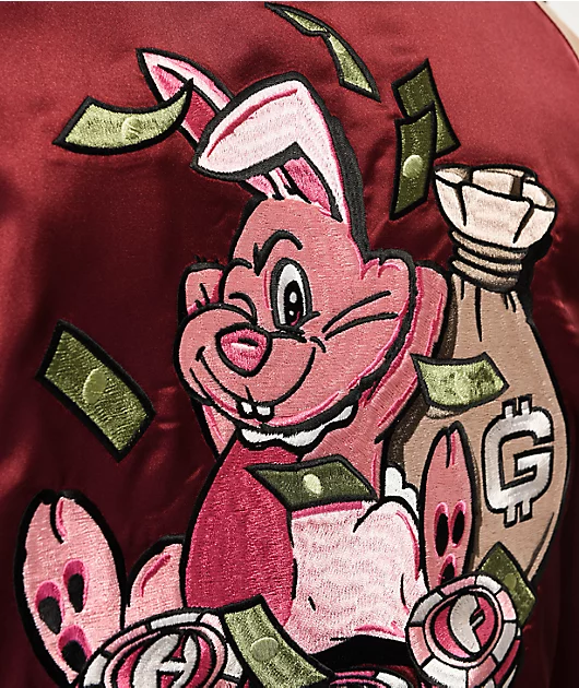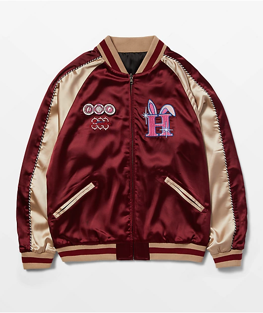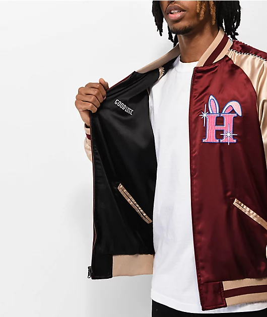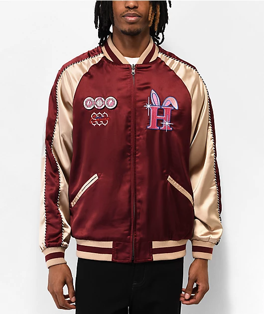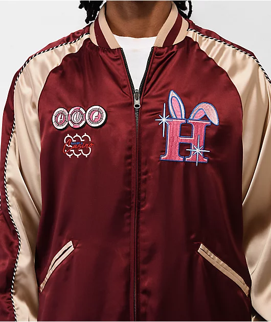 HUF and Freddie Gibbs celebrate the release of ‘Soul Sold Separately’ with a reversible souvenir jacket, featuring dark red and gold tones throughout. A large image of the big boss rabbit is embroidered on the back, while additional co-branded casino grap