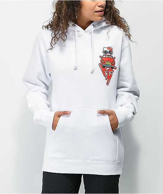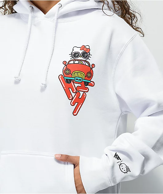 Beep beep! Hypland x Hello Kitty’s Car Break white hoodie has arrived to add some kawaii style to your closet. The sweatshirt’s warm, fleece-lined interiors and drawstring-adjustable hood lend it some soft, snuggly style, while Screen-printed graphics of