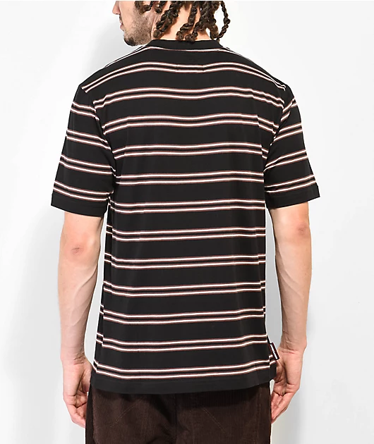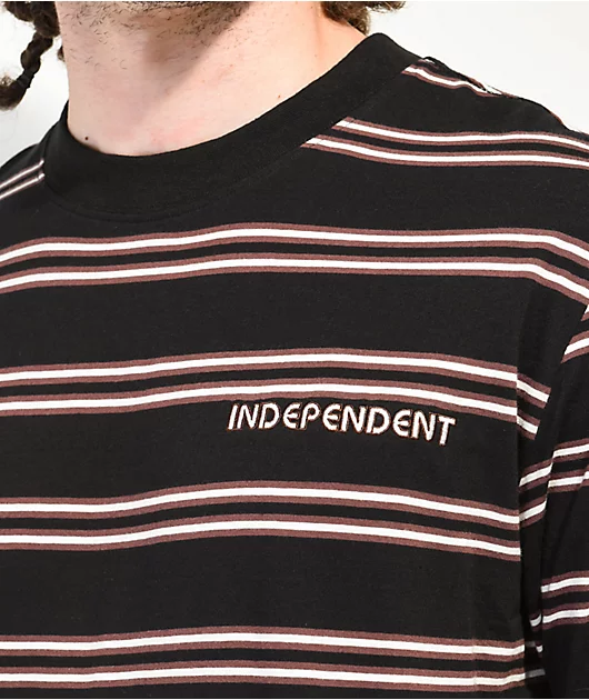 The Decker stripe t-shirt from skateboarding legends Independent features black and brown horizontal stripes throughout, with an embroidered brand applique on the left chest. Giving a simple 2000s inspired look, the premium cotton t-shirt has a relaxed si