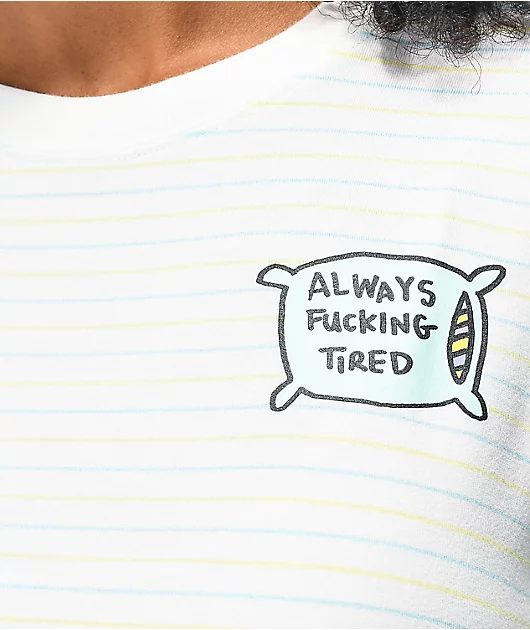 JV by Jac Vanek Always Tired White Stripe Long Sleeve T-Shirt