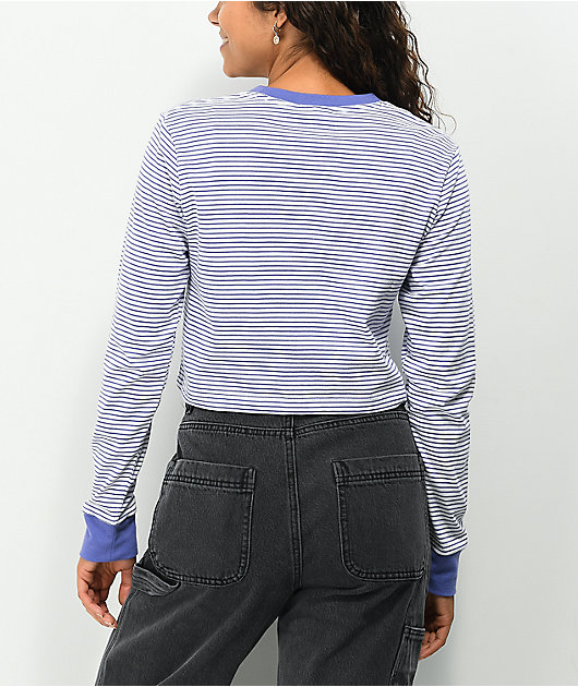 JV by Jac Vanek Too Stressed White & Purple Stripe Crop Long Sleeve T-Shirt